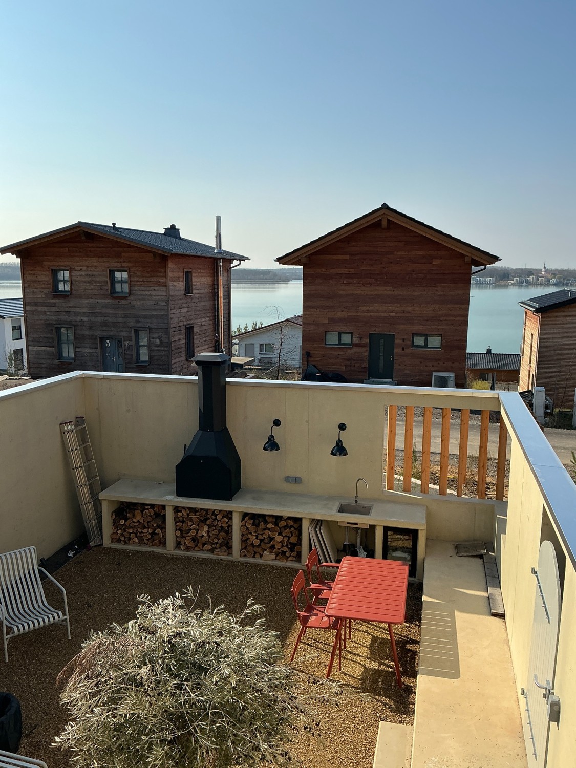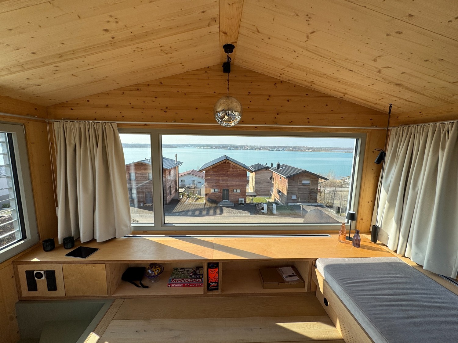 ca. 45 m², Ferienhaus für bis zu 4 Personen mit spektakulärem 360°-Blick über See und Felder, ruhige Lage mit Patio/Innenhof