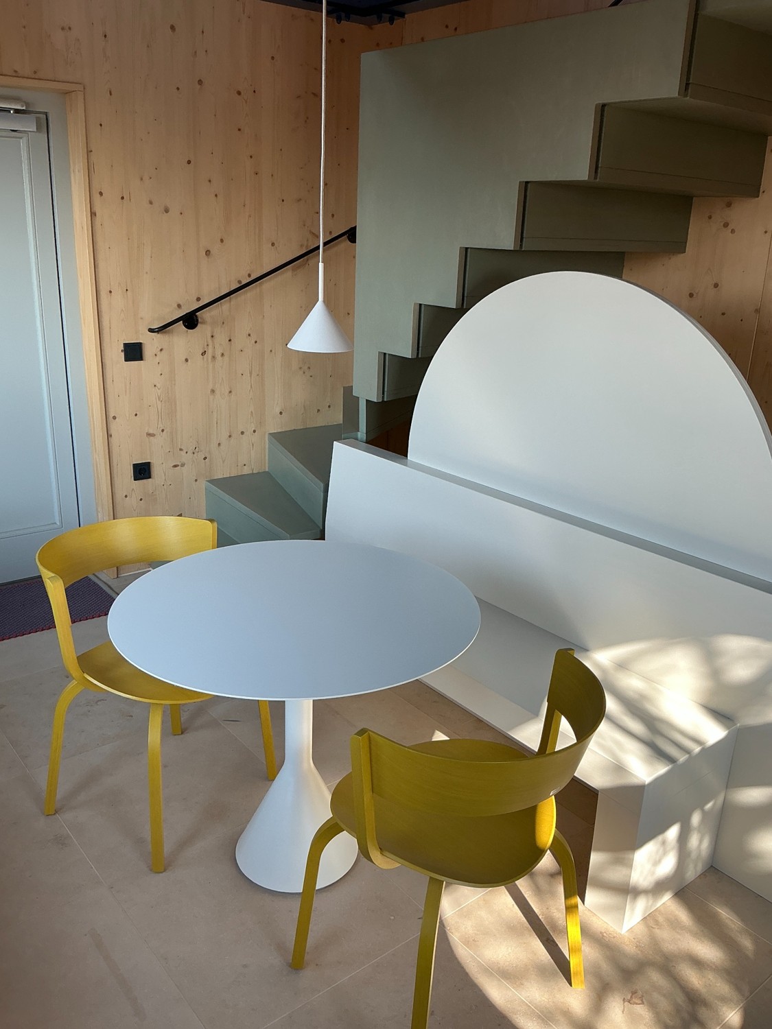 OBERGESCHOSS: Küche mit Essbereich, schwebende Schlafkoje