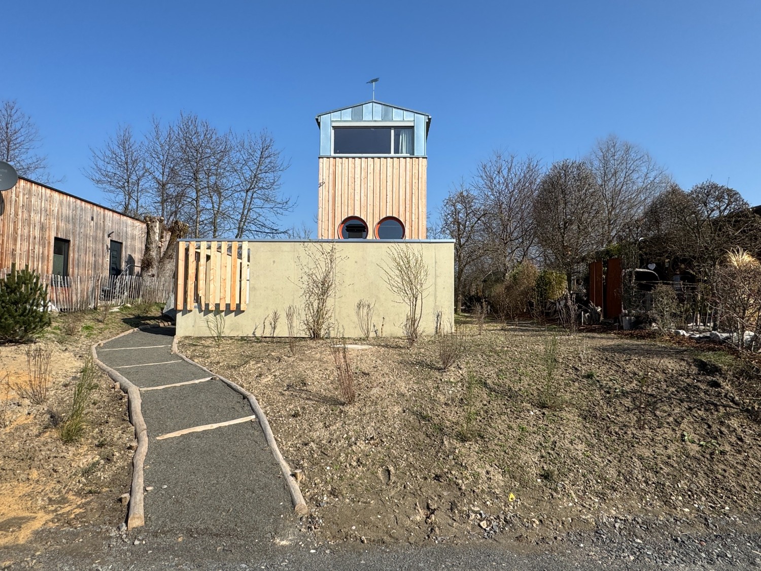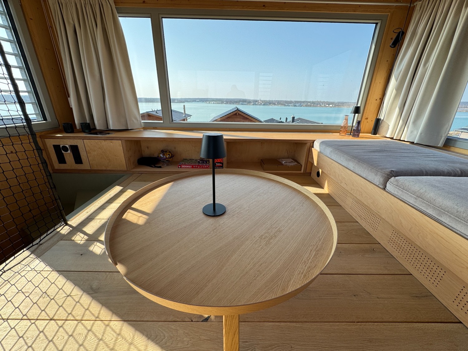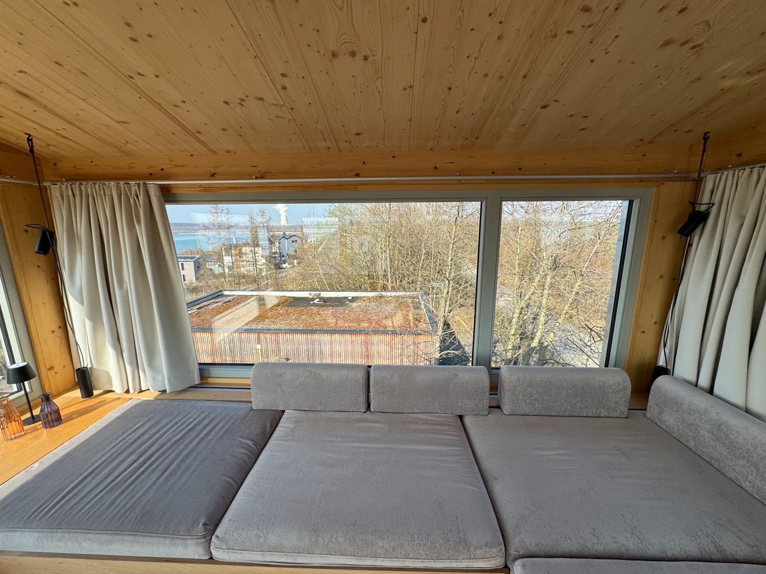Das Ferienhaus HOCHwasser ist ein besonderer Rückzugsort für bis zu vier Personen. Auf ca. 45 m² verteilen sich drei Ebenen, die durch ihre offene Architektur und den spektakulären 360°-Blick über See und Felder ein einzigartiges Wohngefühl schaffen. Der Zugang zum Haus ist sowohl über das Erdgeschoss als auch über das 1. Obergeschoss möglich.
