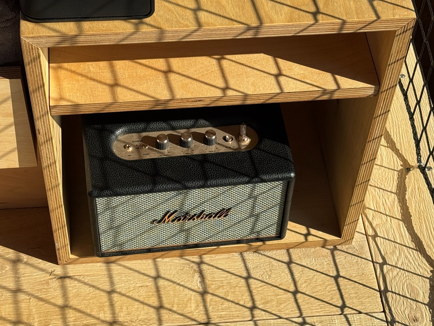 Eine Spielesammlung, ein Fernglas, Holz und Anzünder für die Feuerstelle sowie ein Autostellplatz runden die Ausstattung ab.