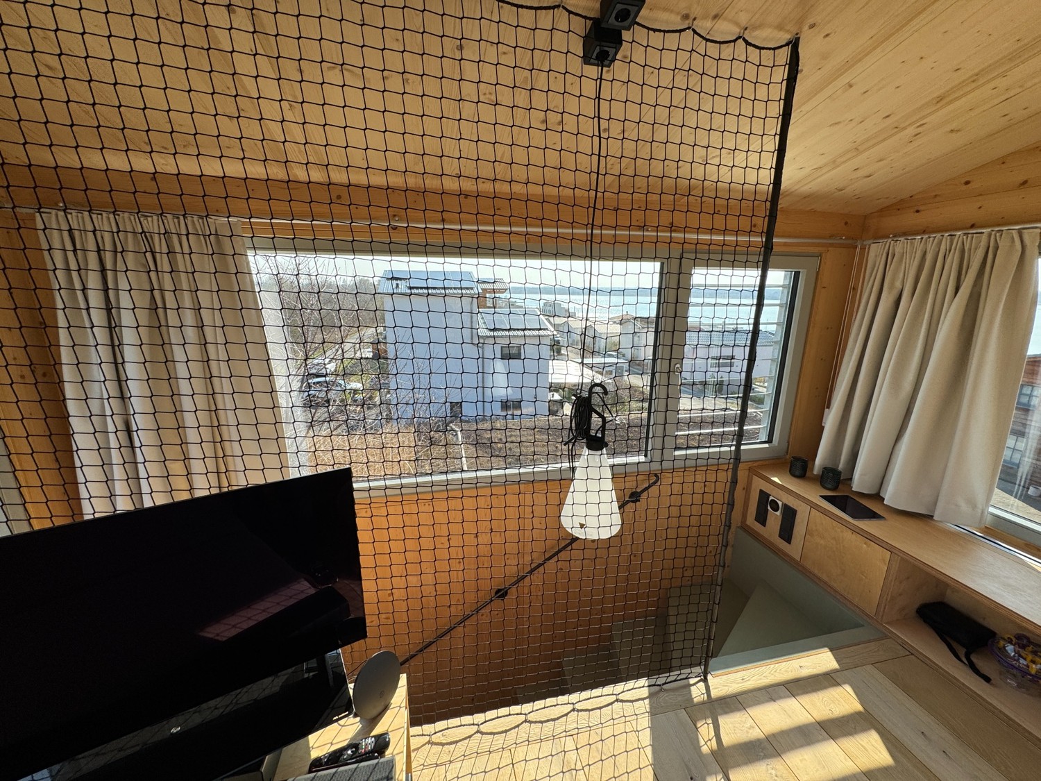Schwebende, von der Dachgeschossdecke abgehängte Schlafkoje für 2 Personen, Matratze 1,80 × 2,00 Meter, Erstausstattung Bettwäsche